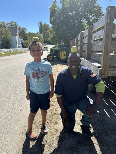 We took the hayride and my nephew (8) looks over and sees the driver has an apple on his head. So of course, my nephew needs to put an apple on his head. The driver notices and is all smiles. When they see each other with the apples on their head, they laugh a bit and give thumbs up.